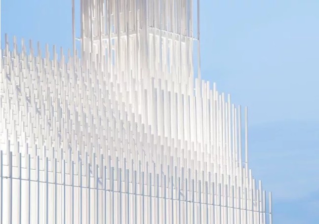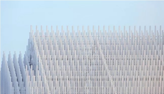 建筑外墻裝飾一般采用瓷磚、幕墻鋁單板及幕墻玻璃等形式,隨著人們審美的拓寬、設計風格的演變,外墻鋁方管的裝飾方式似乎越來越受到人們的青睞。突破傳統(tǒng)形制,突破傳統(tǒng)材料,突破傳統(tǒng)結構,突破傳統(tǒng)的構建方式,純粹的白色與光影的自由交織。主要建筑材料采用了厚鋁方管和細鋁方管,厚鋁方管用于穩(wěn)定支撐結構,至于細鋁方管則用于非著地的墻面。如此構造,讓金屬框架得以在疏密劃一的縝致狀態(tài)下排列成格柵墻,其形體虛而透。